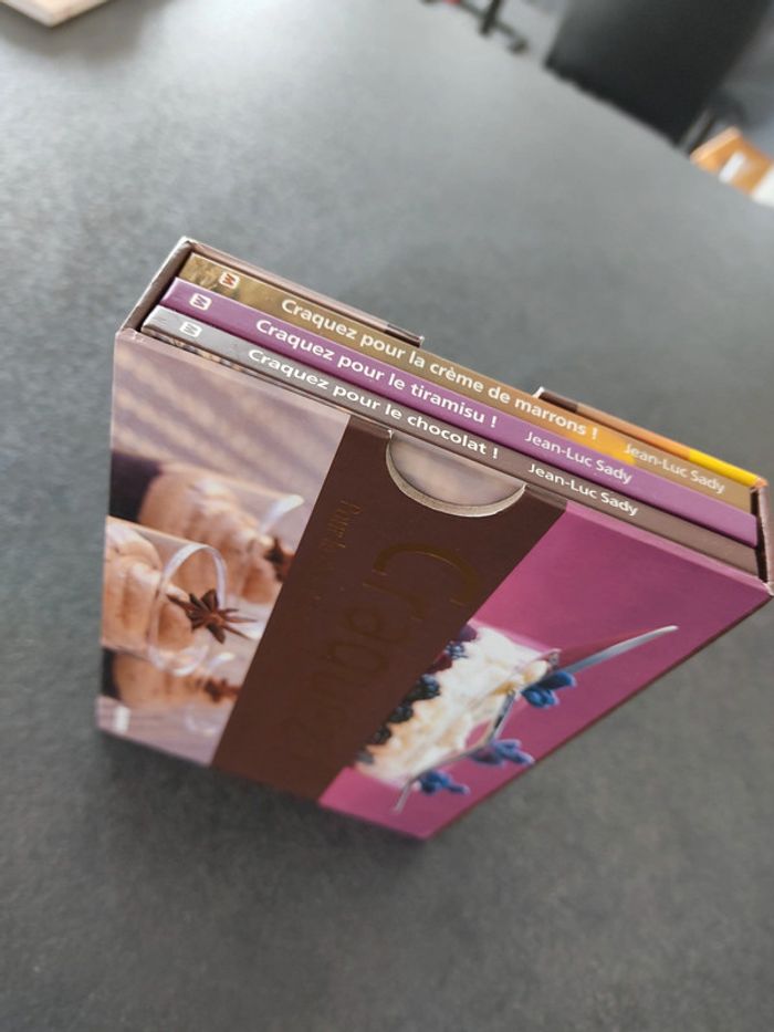 Coffret 3 livres de recettes : craquez pour le chocolat, la crème de marrons et le tiramisu. État neuf. #ksandra57_livres