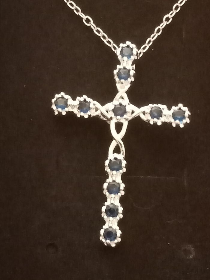 Vente chaîne avec pendentif croix argent massif 925 s orné de saphir