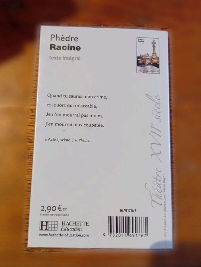 Livre ''Phèdre'' de Racine Texte intégral Protégé par une couverture, très bon état Éditions les classiques Hachette