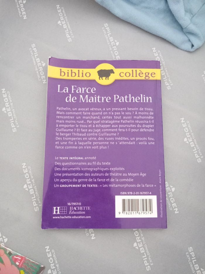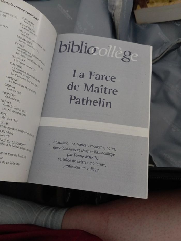 Livre ''la farce de Maître Pathelin'' Édition biblio collège Illustration noir et blanc pour accompagner le texte Bon état général, un peu utilisé