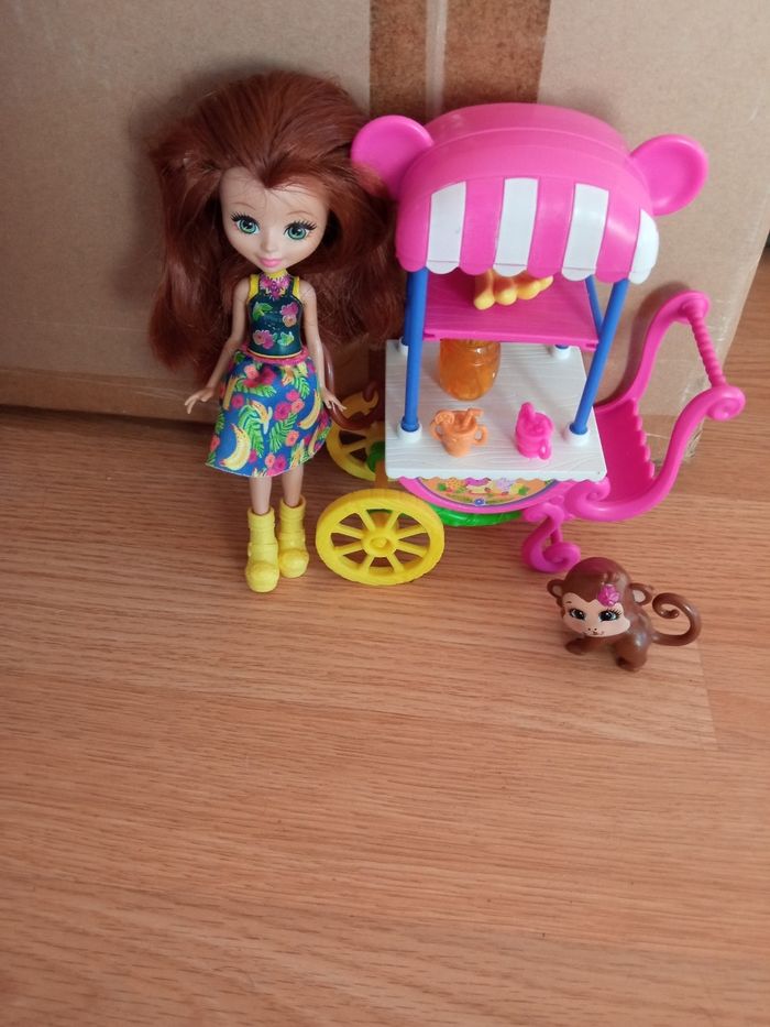Vends une poupée enchantimals à 12 euros Poupée singe avec sa mini roulotte et son bébé