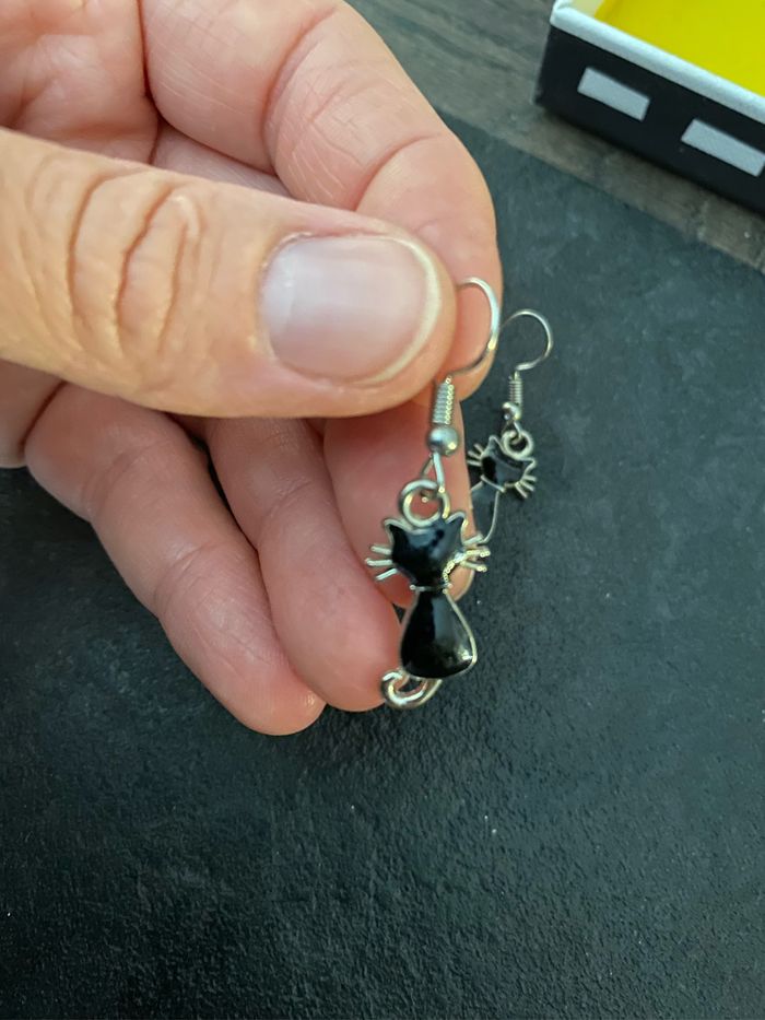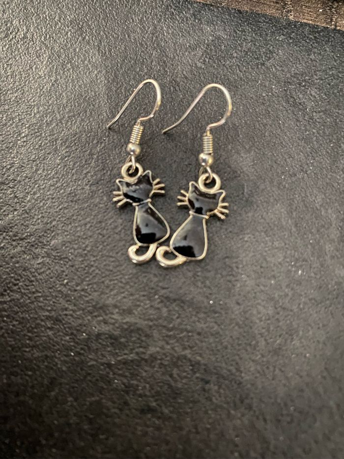 Boucles d’oreilles chat noir, neuves, jamais portées.