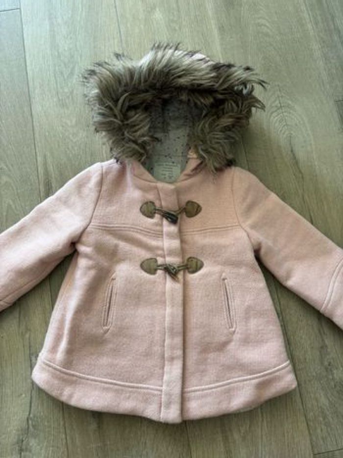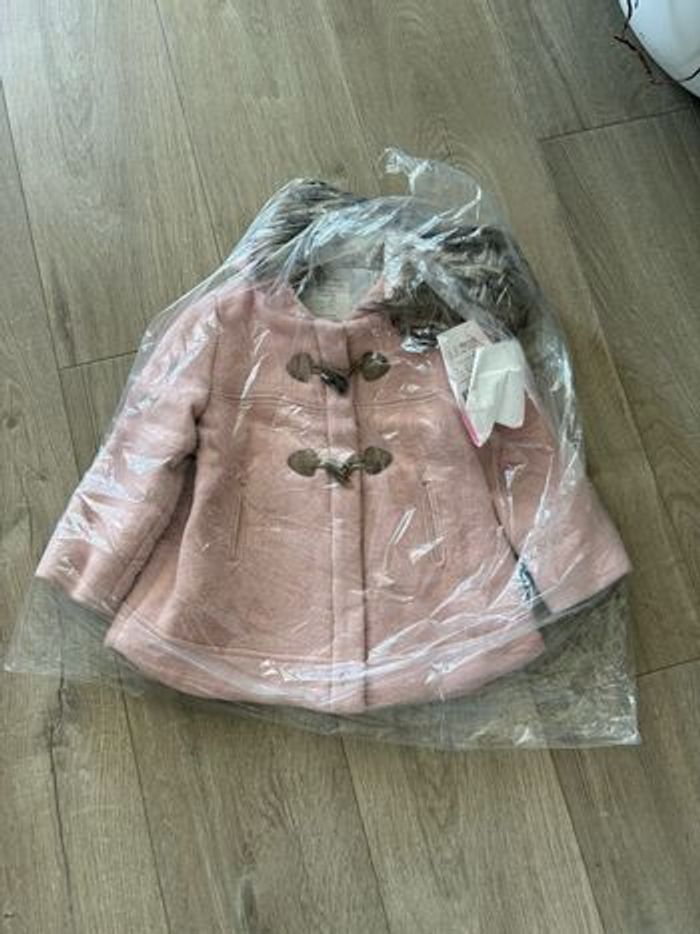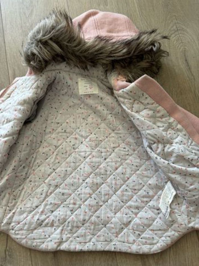 La veste sort du pressing, excellent état pour ce joli manteau hivernal en vieux rose