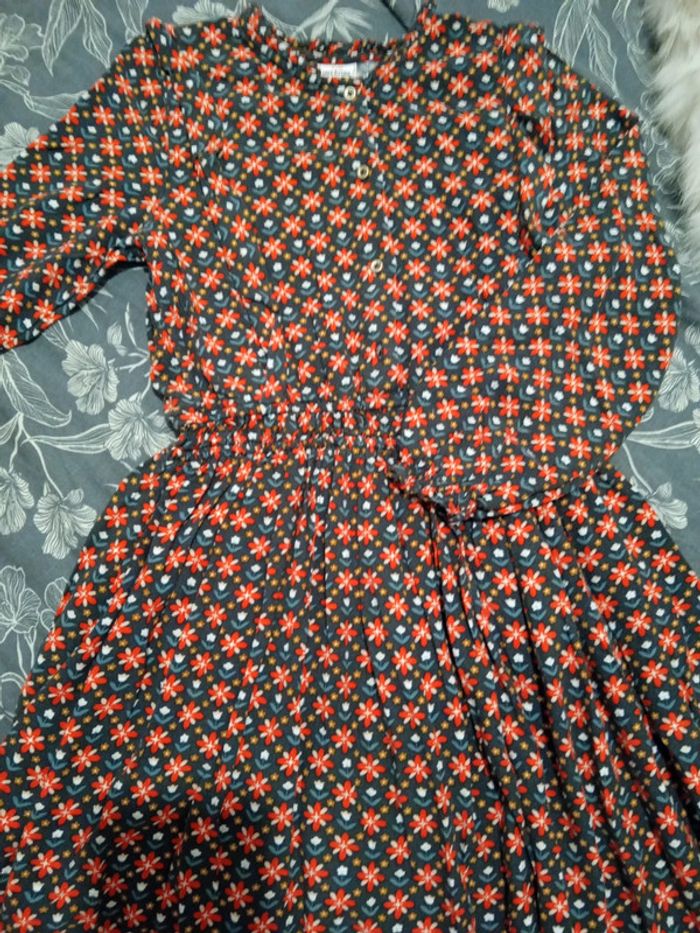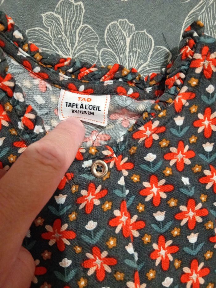 Robe Gris anthracite motif florale 8 ans Mis 2 fois Tape à l'œil