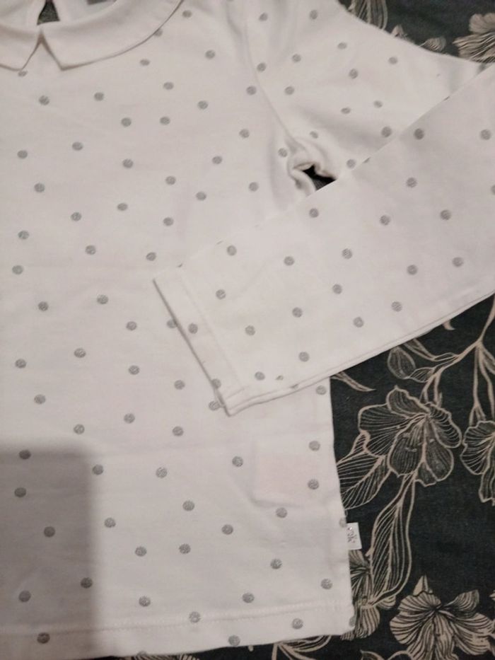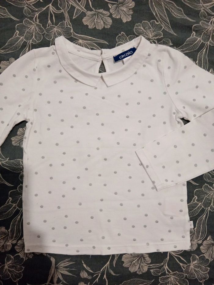 Tee-shirt longue manche Col Claudine 4 ans Blanc pois argenté Okaidi