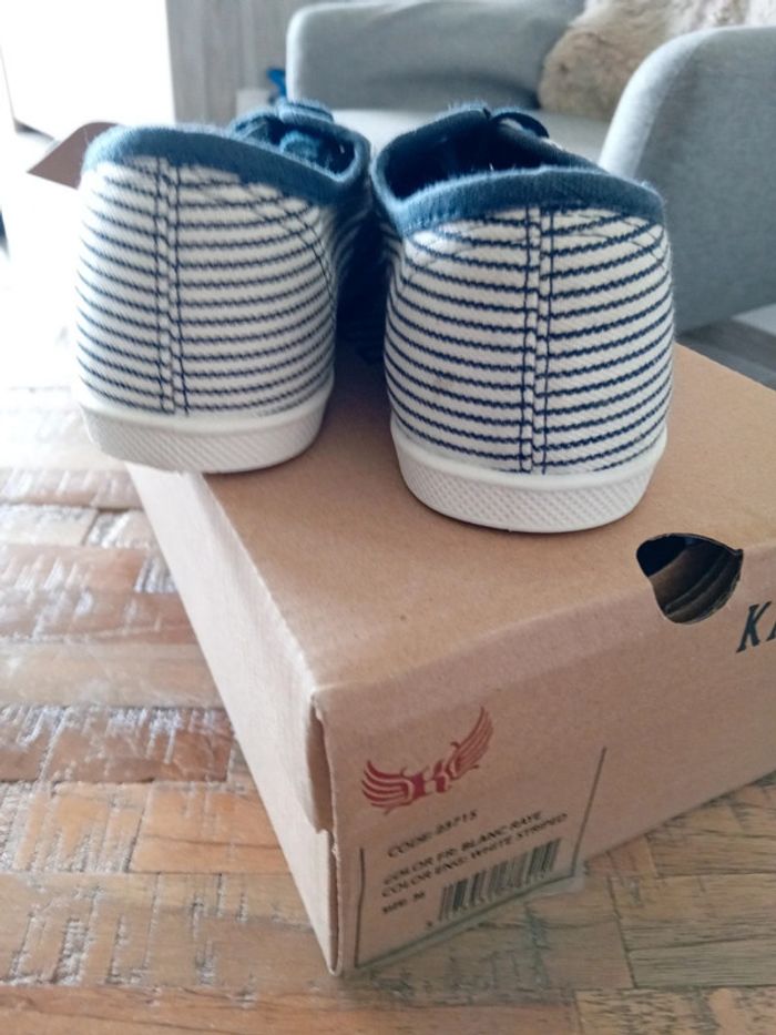 Basket blanche à rayures bleu marine Taille 36 Kaporal Neuve avec sa boîte à chaussures