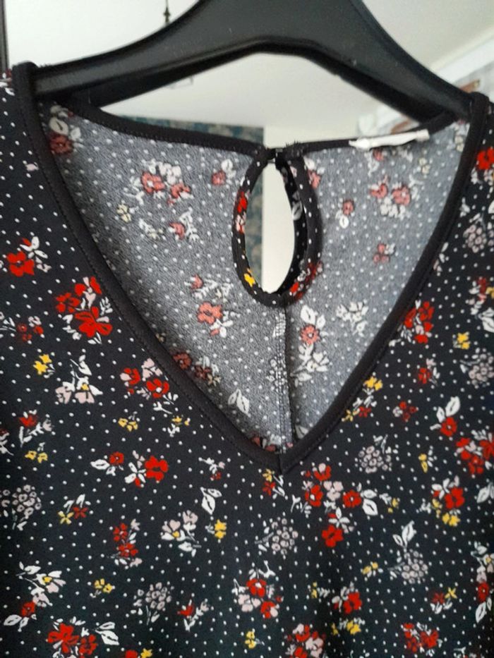 Robe manche 3/4 Taille 38 Noir motif à fleur Cache cache