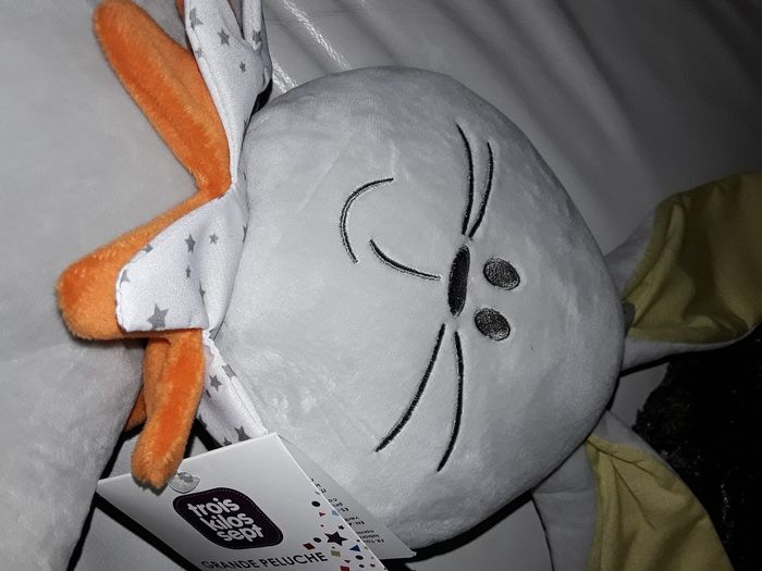 Vends grande peluche lapin gris de la marque 3 kilos 7 produit neuf belle qualité 75 cm valeur 50 € à vendre 30 euros