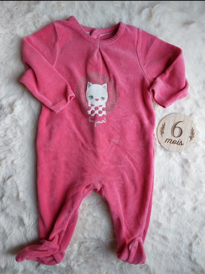 #6moisnouslesnanas Pyjama velours tout doux de la marque Obaibi. Motif chat. Très bon état.