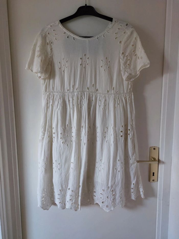 Robe Zara style broderie anglaise. Col rond, fermeture dans le dos + lacets avec pompons. Très bon état. Short intégré.