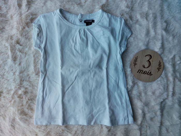 #3moisnouslesnanas T shirt manches courtes bébé, détail petit nœud en tulle sur le devant. Très bon état. Marque Kiabi, taille 3 mois.