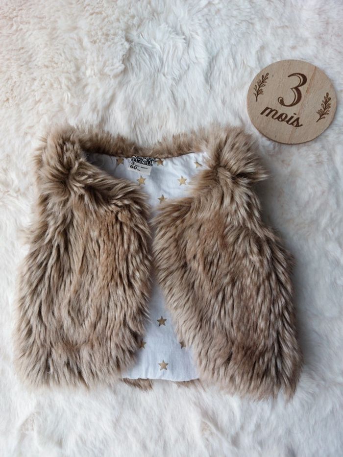 #3moisnouslesnanas Magnifique petit boléro sans manches en fourrure marron de la marque Tape à l'œil. Superbe état 👌
