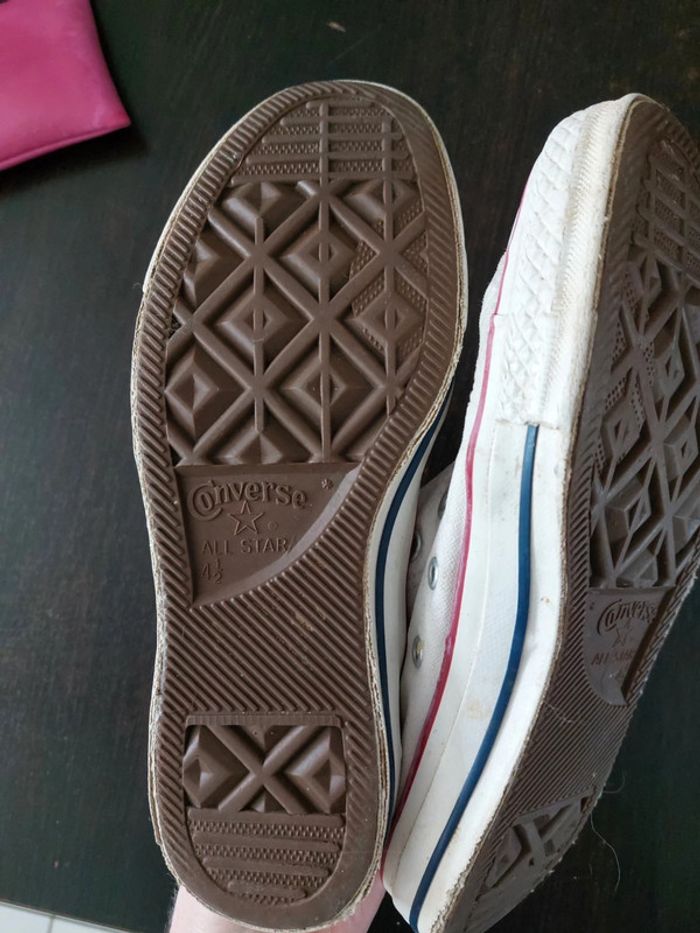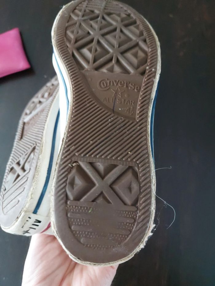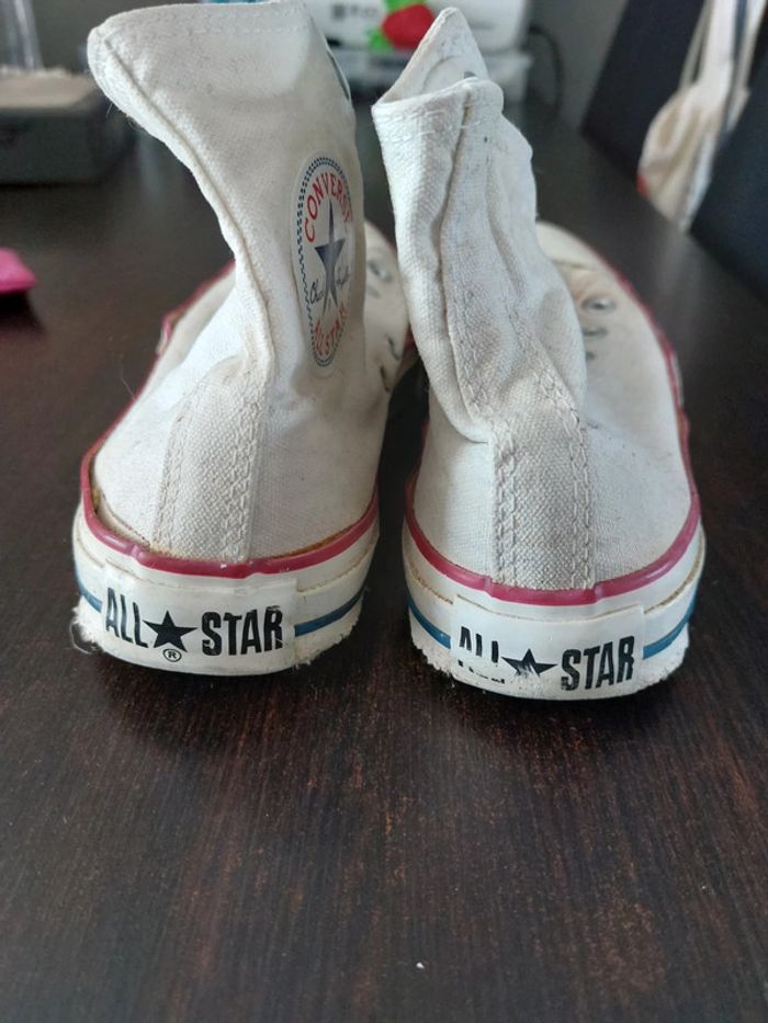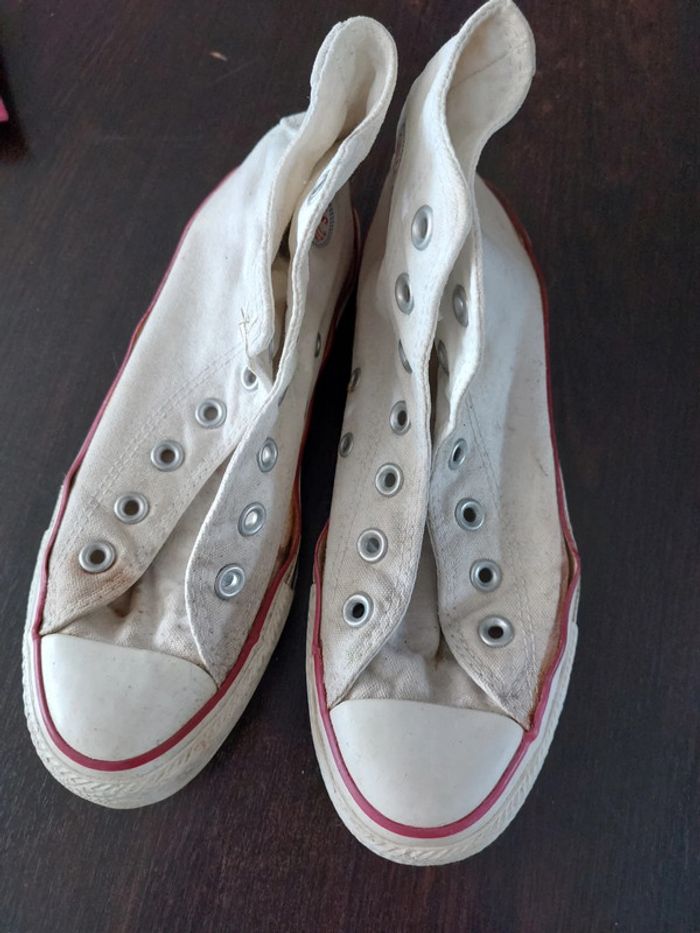 Paire de basket Converse hautes blanches. État satisfaisant. Taille 37,5. Les lavets sont vendus avec mais mis dans la chaussures.