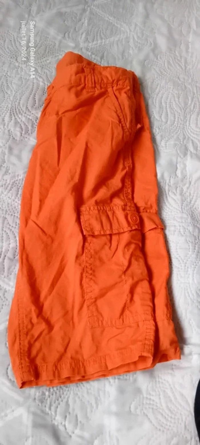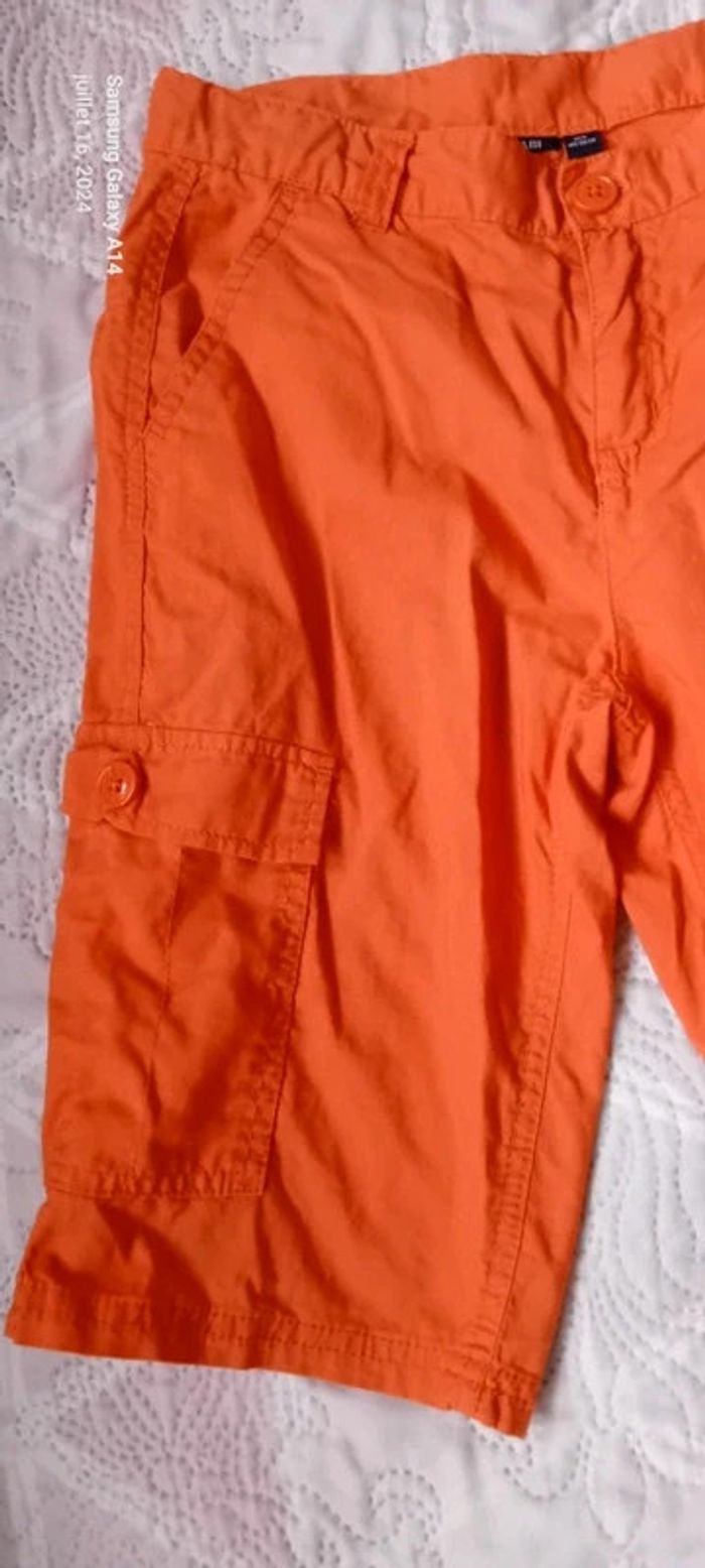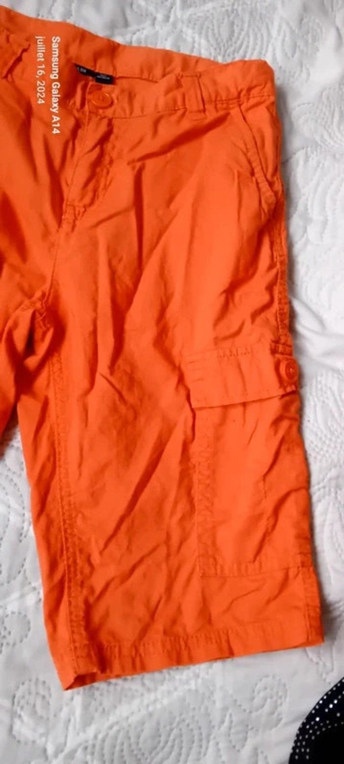 Bermuda cargo en coton léger avec poches devant et derrière longueur 48 cm largeur cuisses 22 cm largeur taille 32 cm très peu porté en très bon état ⚠️ juste une petite trace au dos sous la poche peu visible (voir dernières photos) #midoleenfant ##midolegarçon #midolegarçon10ans #bermuda #bermudagarçon10ans #bermudacargo #orange #kiabi #garçon10ans