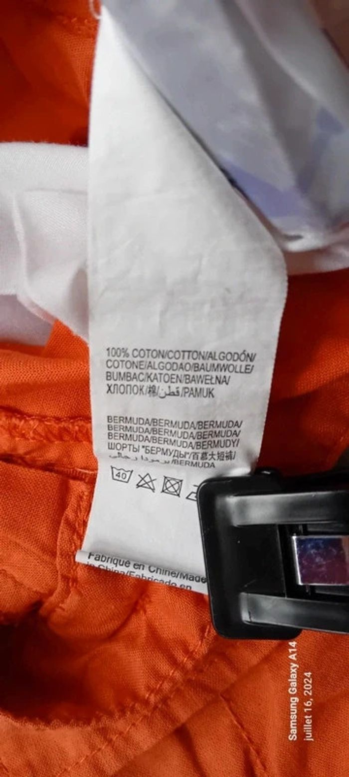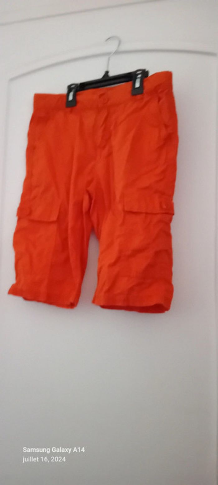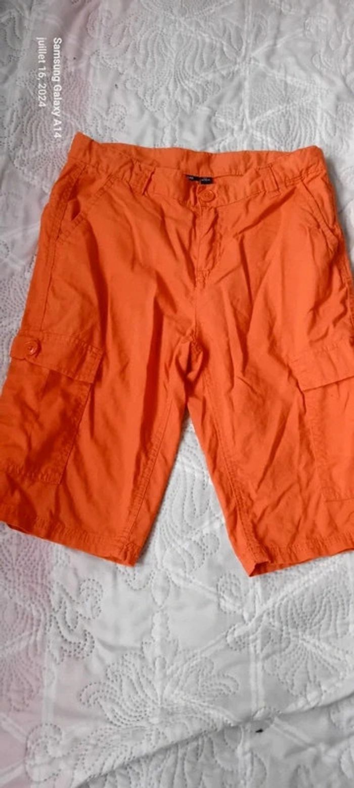 Bermuda cargo en coton léger avec poches devant et derrière longueur 48 cm largeur cuisses 22 cm largeur taille 32 cm très peu porté en très bon état ⚠️ juste une petite trace au dos sous la poche peu visible (voir dernières photos) #midoleenfant ##midolegarçon #midolegarçon10ans #bermuda #bermudagarçon10ans #bermudacargo #orange #kiabi #garçon10ans