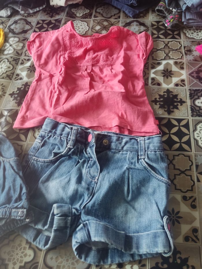 Deux encemble Tee shirt plus short Tee shirt comme neuf Sur l un des shorts il manque un bouton a l arrière