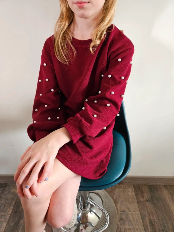 Coucou les filles 🌞 Petit arrivage canon 🥰 la couleur rouge vin et magnifique !!!!! Longue manche avec petite perle. Coupe droite 💪 taille 7- 8 ans Très actuel et top pour une soirée !! 😇 💚