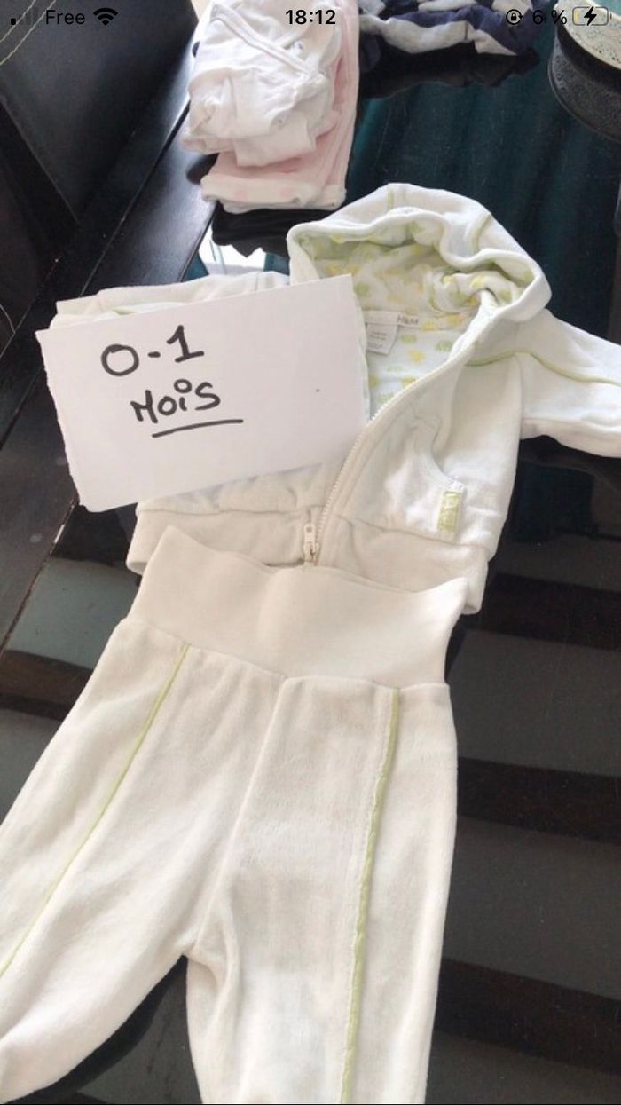 ensemble bébé mixte taille 0-1 mois pas mal porter mais reste en bonne état pas de taches ni de trou maison non fumeur et sans animaux, pour plus de renseignements ou de photo n’hésitez pas à me contacter