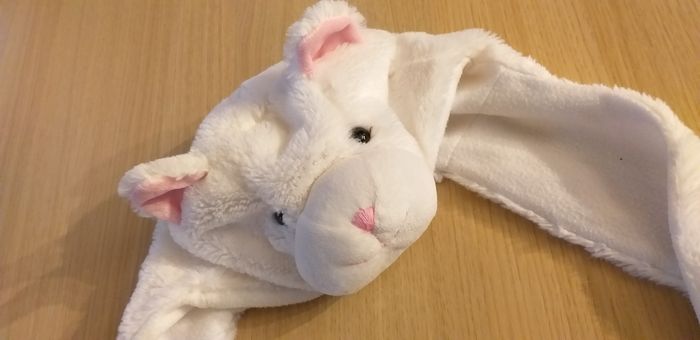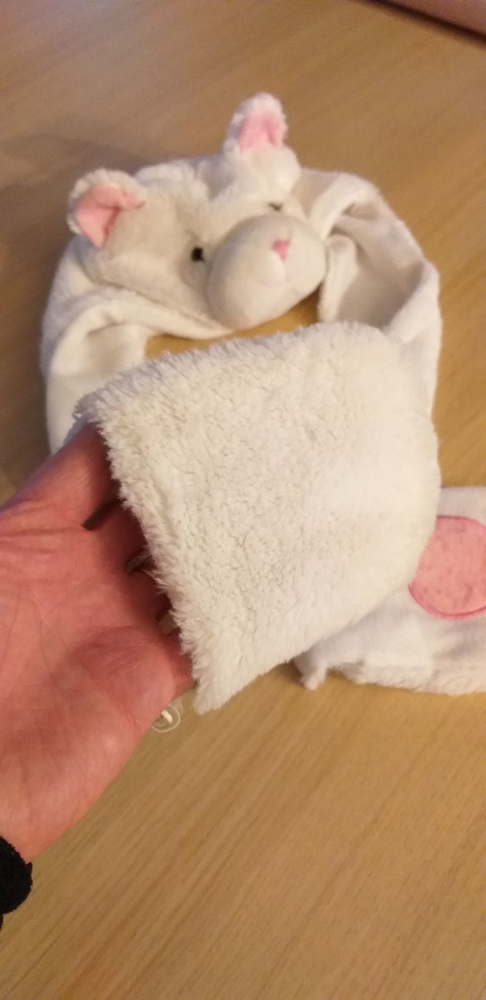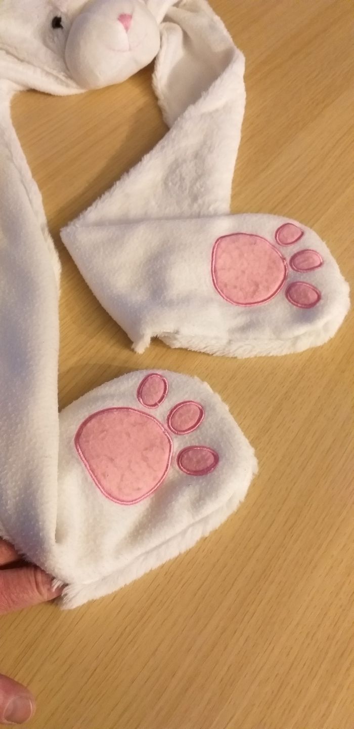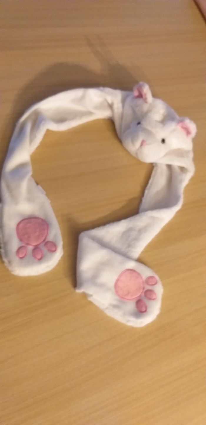 Bonnet à tête de chat avec les pattes pour mettre les mains.