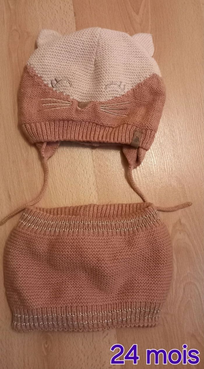 Ensemble bonnet, tour de coup fille Taille 24 mois en bon état