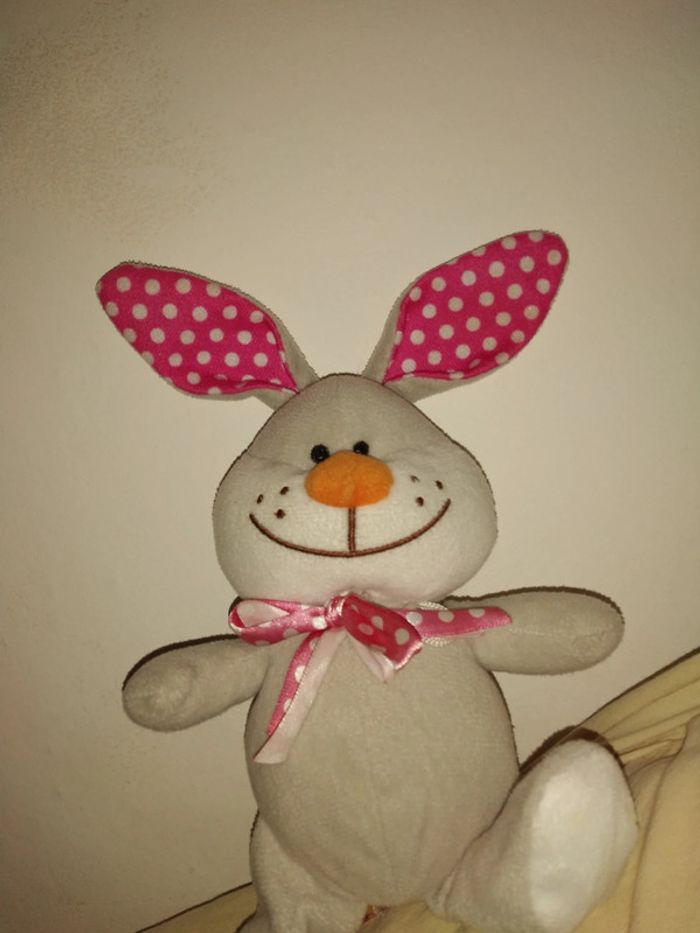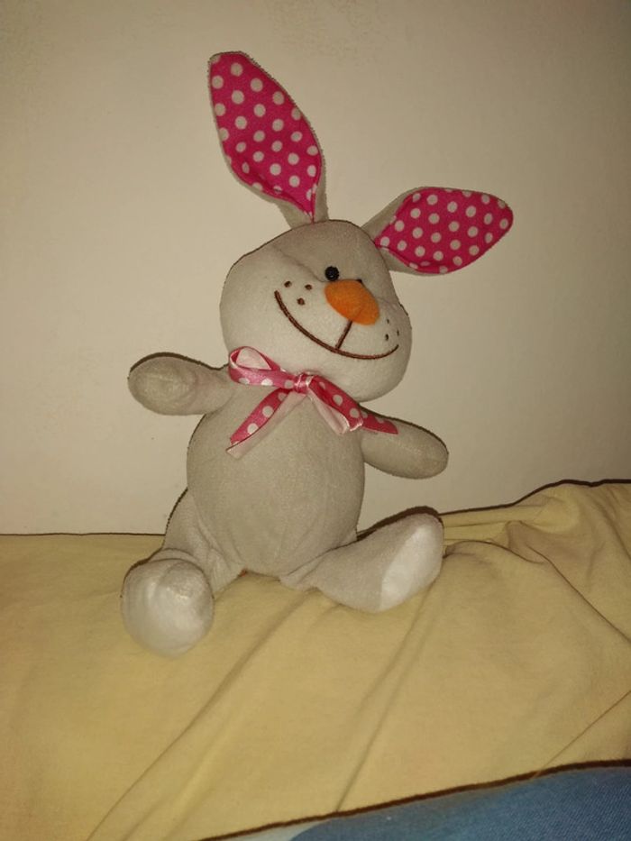 Peluche lapin gris oreilles rose à pois blancs fizzy - photo numéro 1