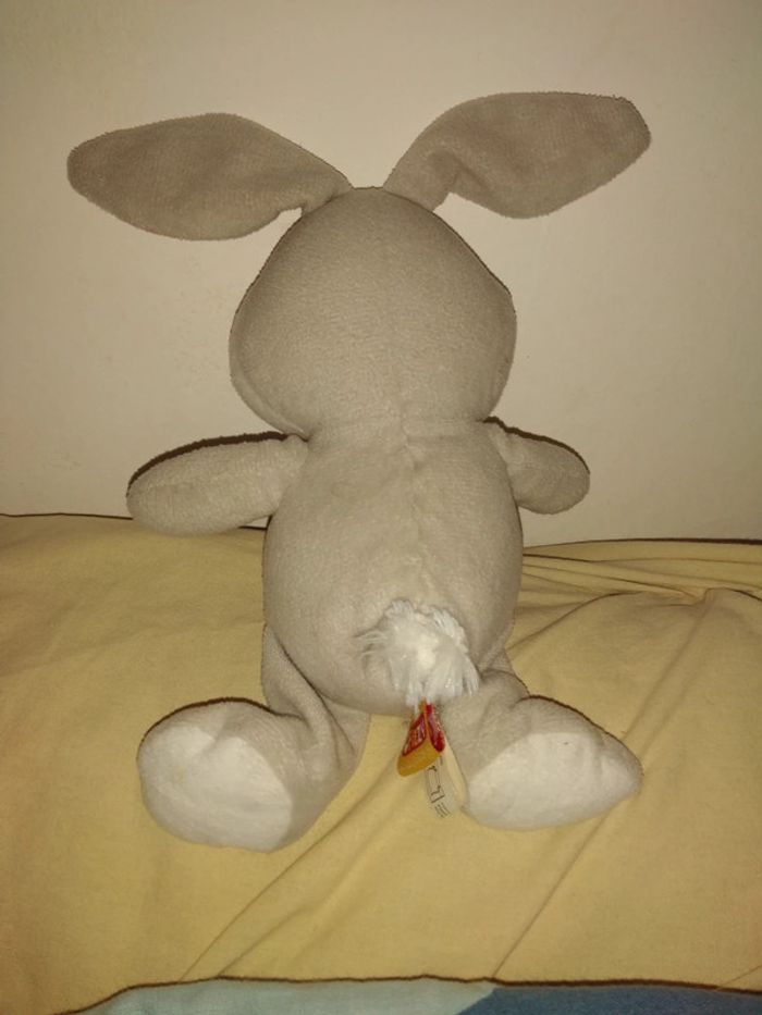 Peluche lapin gris oreilles rose à pois blancs fizzy - photo numéro 3
