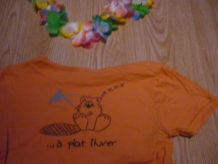 Joli t-shirt MC orange recto verso message un castor la peche l'été et à plat l'hiver taille 2 femme - photo numéro 4