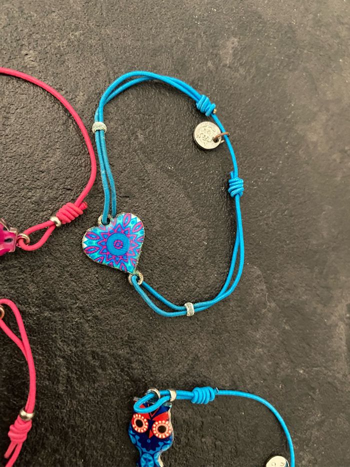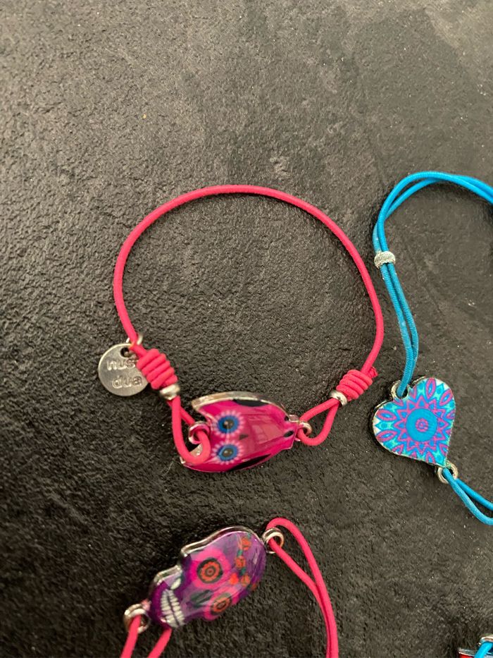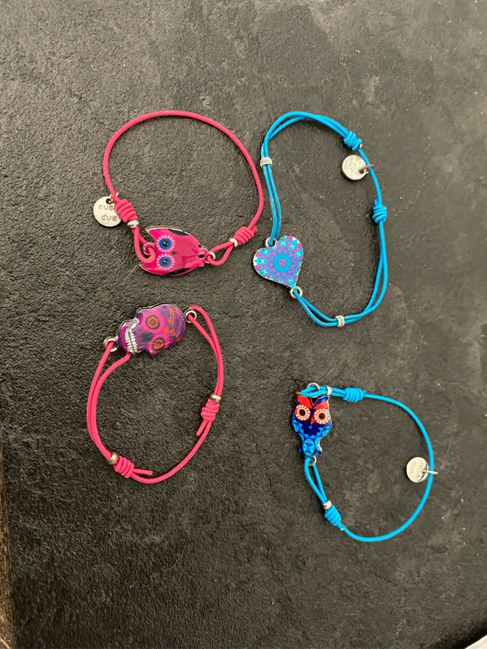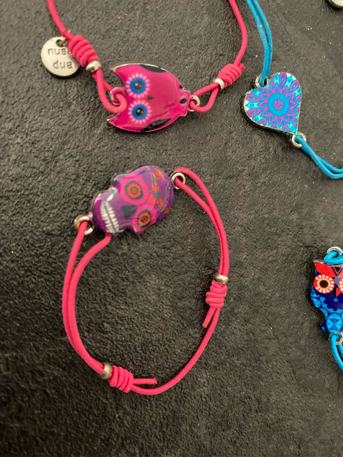 Lot 4 bracelets ajustables Hiboux, coeur, tête squelette