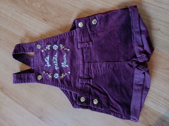 Salopette short en velours bébé fille Taille 3 mois. Très bon état. Ni tâches ni trous. Maison non fumeur.