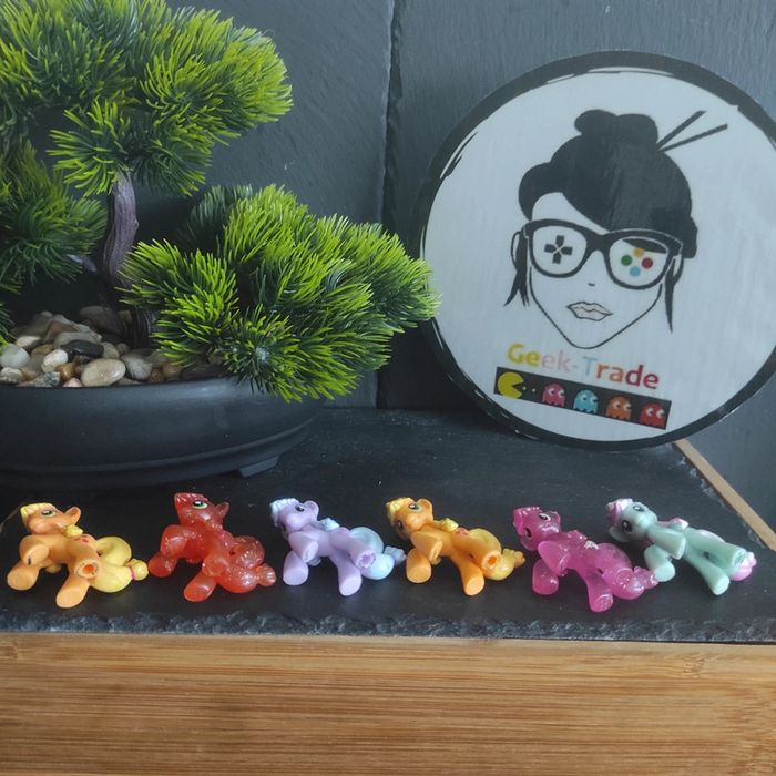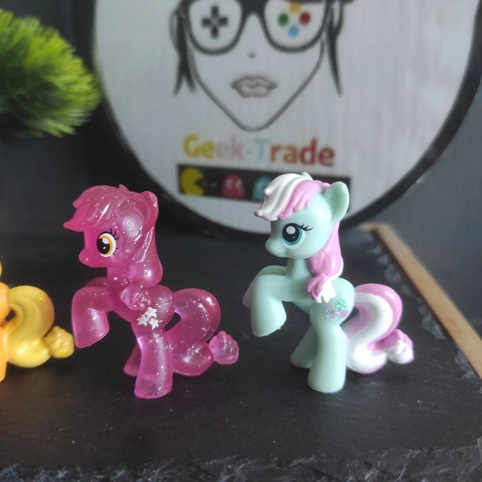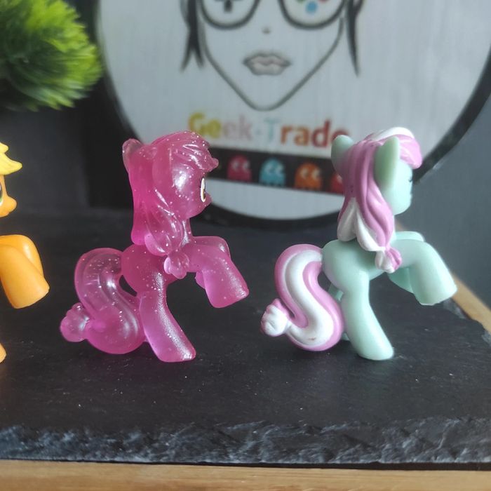 6 My Little Pony G4 blind bag minty Lily valley applejack grappe delight Blind bag mini figure Très bon état Applejack glitter : manque un petit bout de l oreille Lilly valey : manque un petit bout de l'oreille Manque un petit peu de peinture sur le bout du toupet de minty My little Pony g4 Marque Hasbro Description complément : Petit nettoyage à prévoir Les crins sont de la longueur en photo ils peuvent potentiellement avoir été écourtés Vous achetez ce que vous voyez les photos font entièrement partiede la description Transport : Les frais de transport comprennent les frais du transporteur ainsi que l'emballage pour protéger au mieux votre achat. Chaque achat est envoyé en format colis avec numéro de suivi Le poids du colis est de 500g finit (je ne peux pas faire moins) il peut donc y avoir plusieurs objets dans le carton si vous le souhaitez (contactez moi afinde grouper les frais de port) Référencement : #geektradeponeyg4 My little pony g4 Mon petit poney g4 Vintage/ancien /collection #geektradeponeyg4 Mon petit poney / my little pony / Mein Kleines pony / mi pequeno pony /mlp #mylittlepony #monpetitponey #poney #hasbro #vintage #ancien #collection#collectionneur #cheval #poneyg4 #ponyg4 #jouetancien #mlp #jouetfille #fille#enfant #jouet #poupée