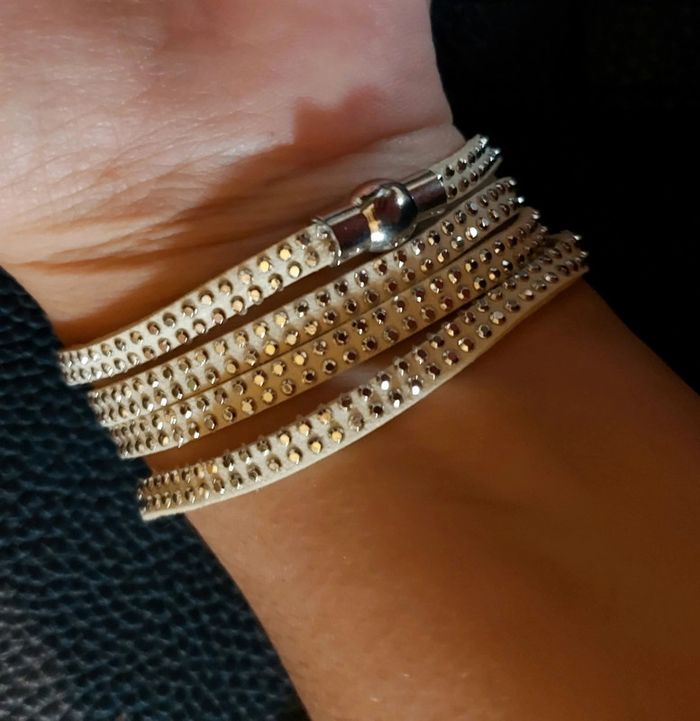 Jolie bracelet fantaisie Avec fermoir aimantée Couleur : beige et argenté
