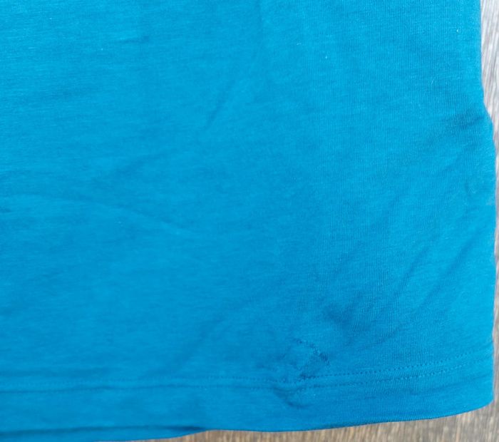 Débardeur bleu Petit accro sur le bas (voir 2)mais rien de méchant. Marque :Puma Taille : S