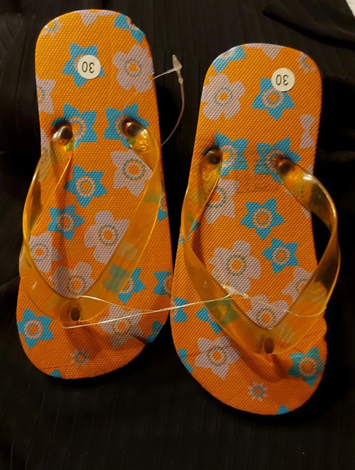 Tong fille Couleur : orange à fleurs 🌸 bleu Pointure 30