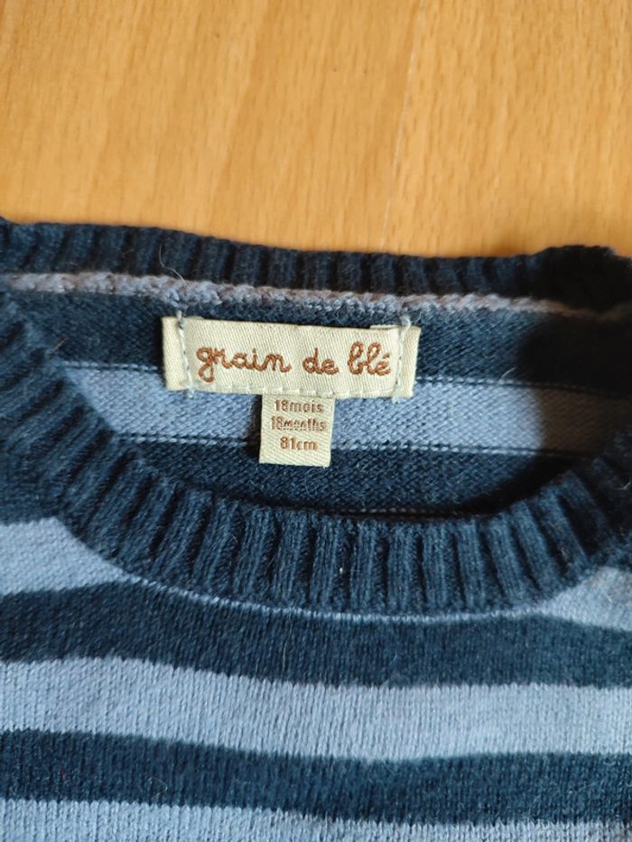 Lot tenue pantalon P'tit bisou + t-shirt manches longues Zara Baby + pull Grain de blé en 18M - photo numéro 7