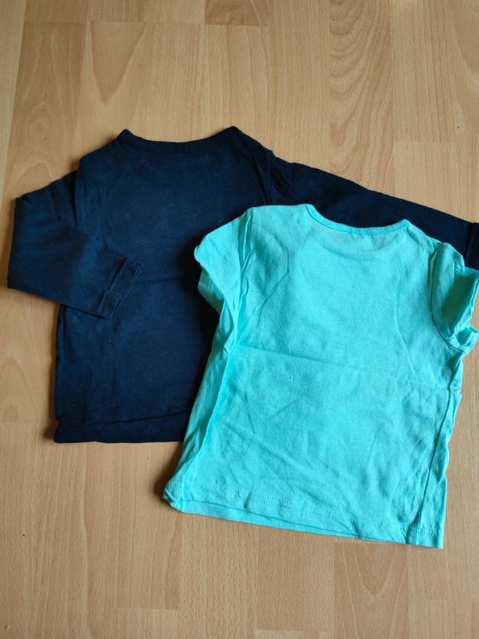 Lot 2 t-shirts neufs manches courtes turquoise et longues marine Kiabi en 6M - photo numéro 6