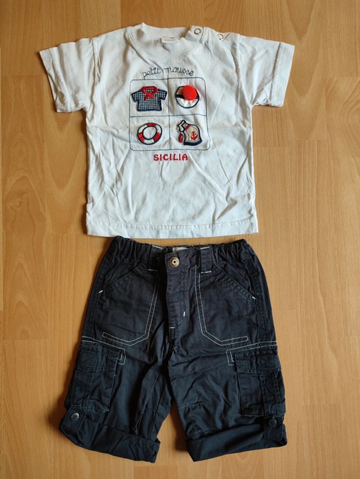 Lot tenue été pantalon/bermuda In Extenso + T-shirt manches courtes Sicilia en 12M