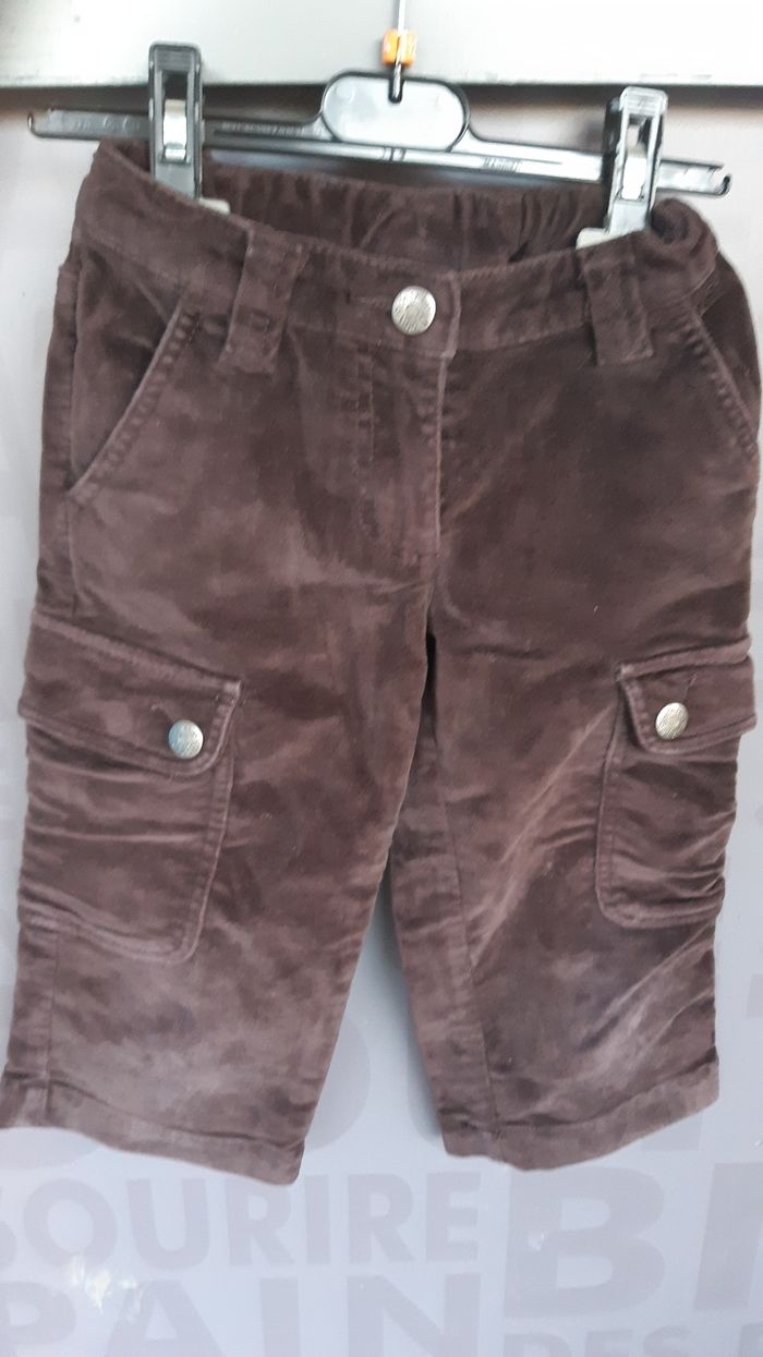pantalon velours doux marron élastique d'aisance, bouton pression 5/6 ans bon état