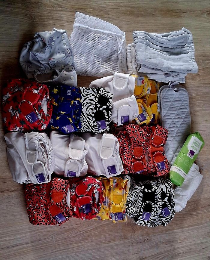 Je vends 17 couches lavables de la marque Bambino Mio (tailles 1ère et 2ème âge) avec leurs inserts, 1 pampers. Certains inserts ont été utilisés et présentent des tâches, tandis que d'autres sont neufs. L'ensemble comprend également 3 inserts nuit, des voiles de protection, et je rajoute un filet pour faciliter le nettoyage en machine. Prix de l'ensemble : 88€ pour tout le lot Ces couches sont idéales pour un usage quotidien et permettent de réduire les déchets tout en étant respectueuses de la peau de votre bébé.