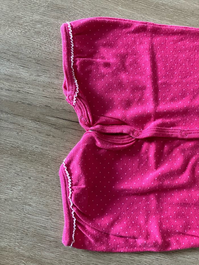 Barboteuse rose à pois avec petit noeud Fermeture par boutons pression à l’avant et à l’entrejambe Petit Bateau taille 3 mois Parfait état