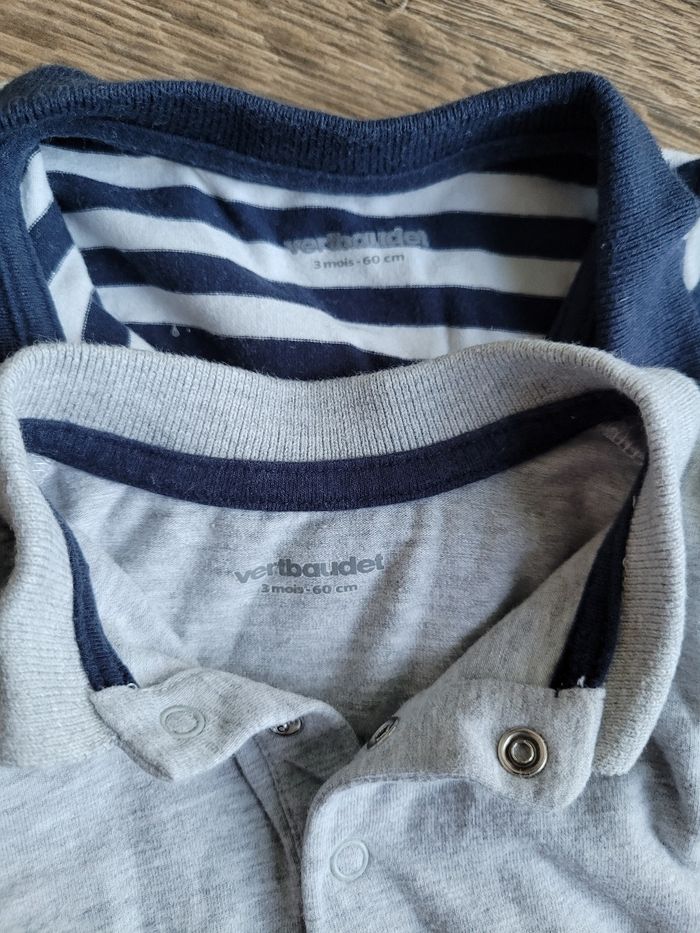 Lot de 2 bodys col polo manches longues de marque Vertbaudet taille 3 mois/60 cm, neufs, jamais portés juste lavés.
