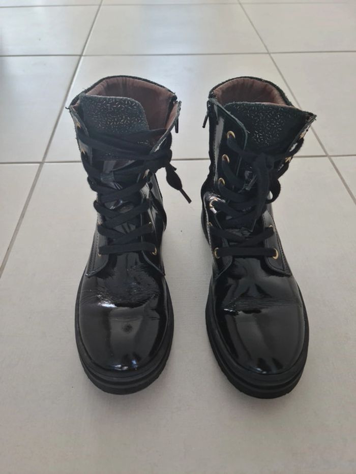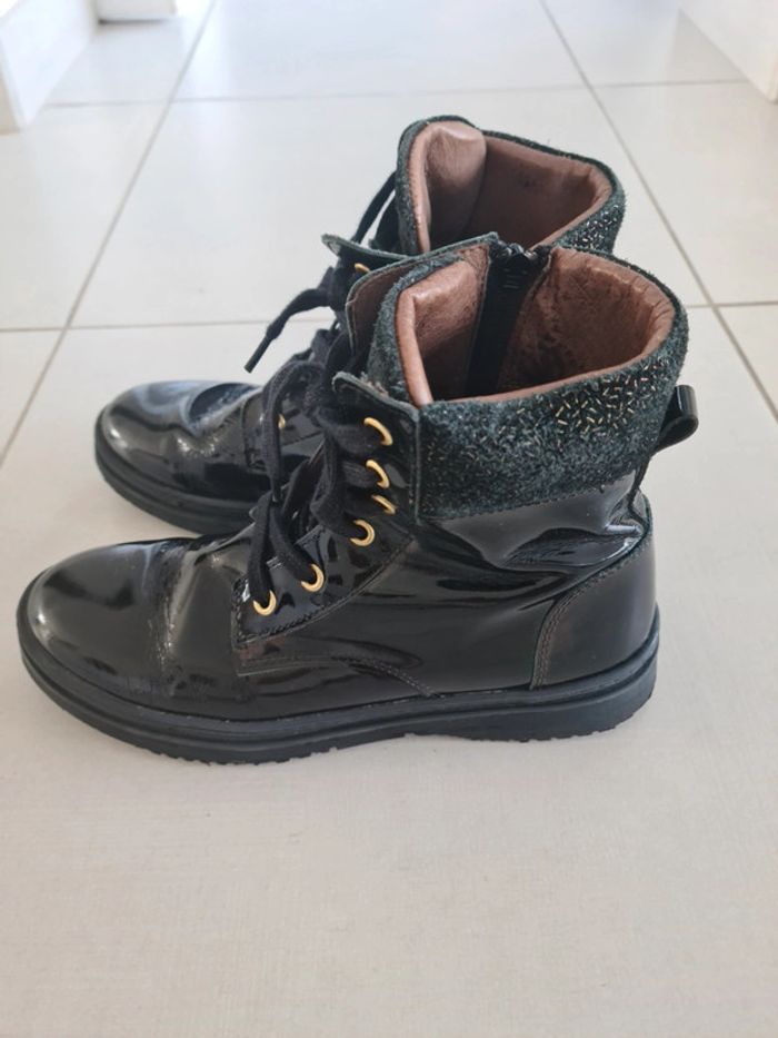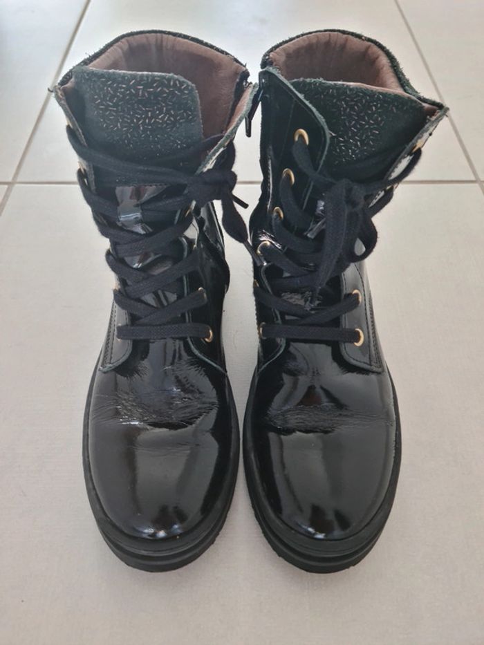Bottines fille acheté boutique Kosma ; Cuir verni ; Pointure 39 ; Acheté 140 euros ; En très bon état ( le cuir est un peu plissé sur le devant : voir photo) #pointure39_louanne59430