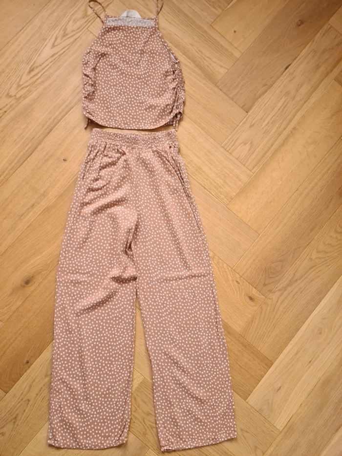 Ensemble composé d un pantalon large et d un debardeur de marque H&M ; Ton marron et blanc ; Taille 12 / 13 ans ; En très bon état #taille12ans_louanne59430 #taille13ans_louanne59430