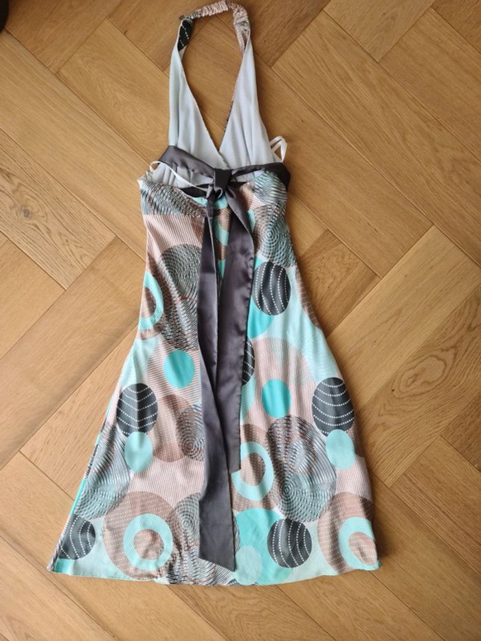 Robe de marque Minelli ; Se noue autour du cou ; Ton bleu et marron ; Taille S ; En tres bon état (de légers accros voir photo) #tailleS_louanne59430