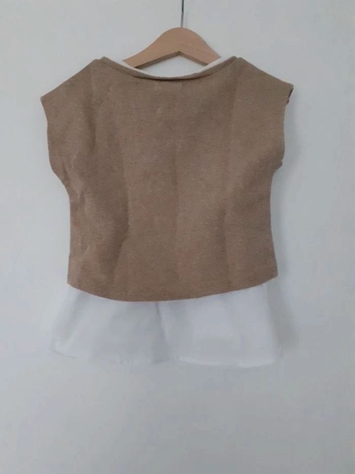 Tunique / débardeur de marque IKKS ; Taille 5 ans ; Ton blanc et beige foncé ; En très bon état #taille5ans_louanne59430