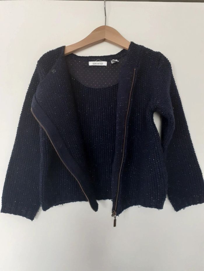 Gilet fille de marque Okaïdi ; Ton bleu pailleté ; Zippé ; Taille 5 ans ; En très bon état #taille5ans_louanne59430