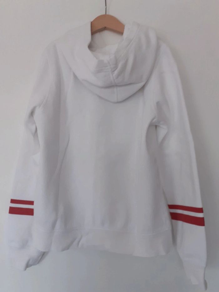 Pull fille de marque Nasa ; Taille 14 ans ; Ton blanc et bleu ; En très bon état (peluche très très légèrement)