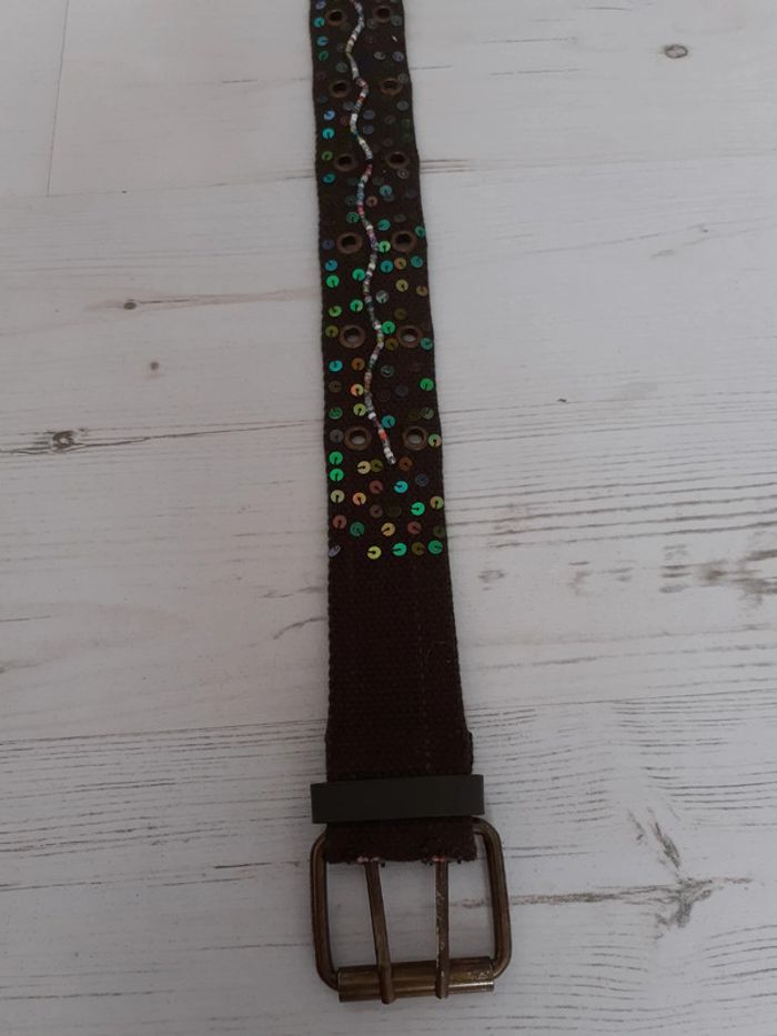 Ceinture fille ; Ton vert / kaki ; Longueur 87 cm