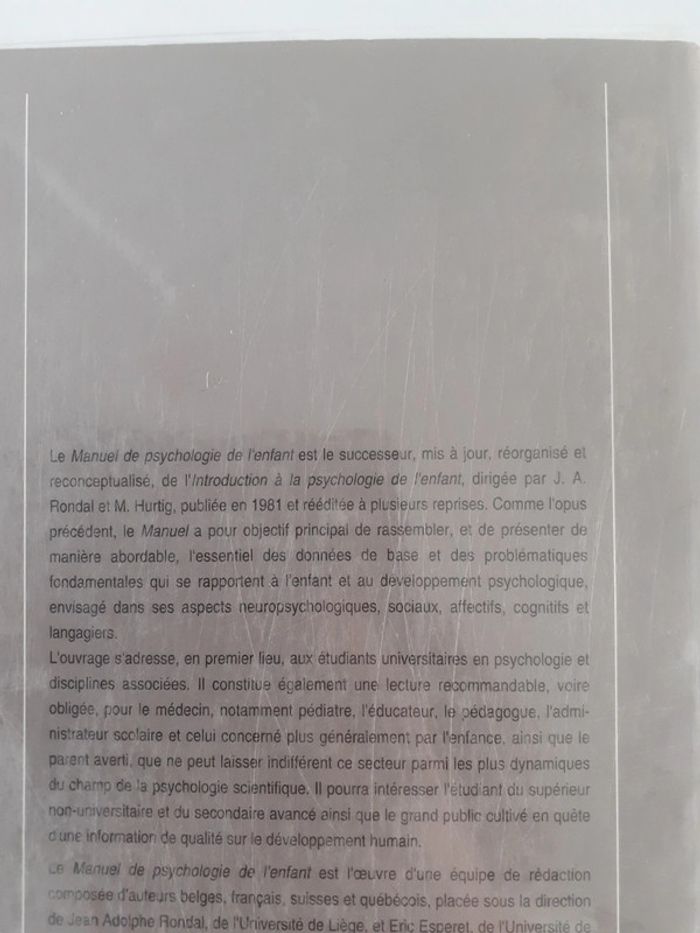 Manuel de psychologie de l enfant de Rondal et Esperet ; En très bon état ( quelques écritures au crayon de mine et petites tâches sur le côté du livre : voir 3 ème photo ) #livre_louanne59430