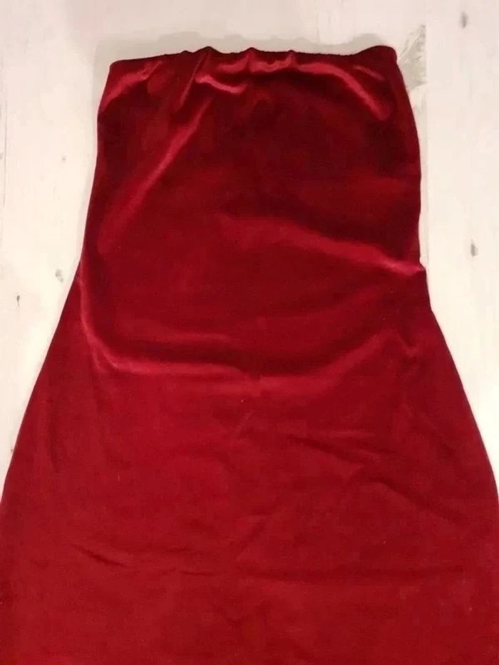 Robe de fête : bustier de marque Boohoo ; Ton rouge : Taille 38 ; Aspect velour ; En très bon état ( porté 1 fois ) #taille38_louanne59430