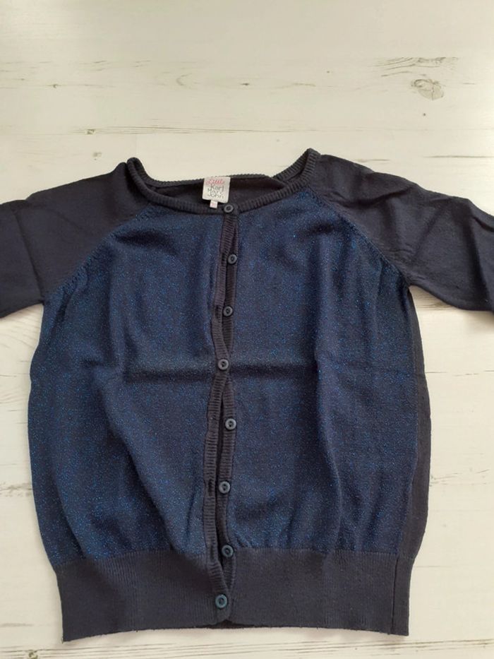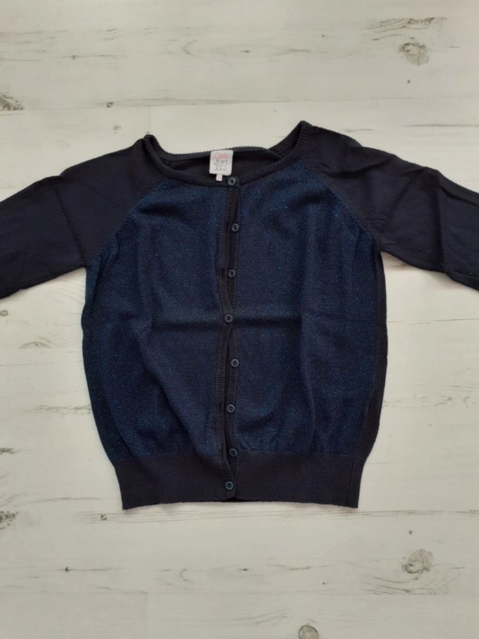 Gilet fille de marque Little Karl Marc John ; Ton bleu pailleté ; Taille 10 ans ; En très bon état ( peluche très légèrement) #taille10ans_louanne59430